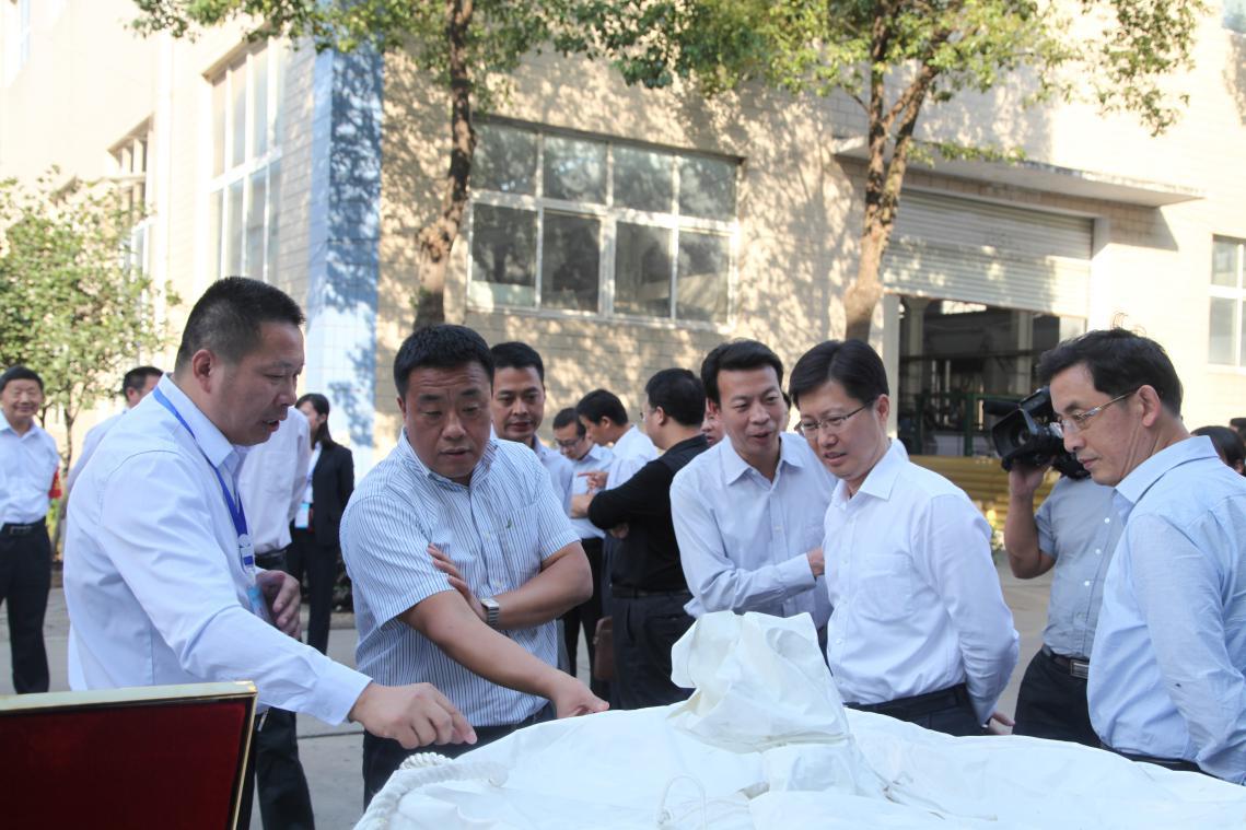 集團公司董事長、黨委書記饒金才同志向來訪的各級領導逐一介紹了我公司產品。此次展品分為救援產品布料展區、應急救援帳篷區、警用帳篷及救災帳篷區、應急醫療帳篷區、抗洪救援沖鋒舟展示區、應急救災儲水池(袋)展示區、污染物儲物袋展示區、應急救援專用泵區、救援物資捆綁器展示區、應急救援物資專用篷布及應急救援指揮帳篷展示區等十一個展區。